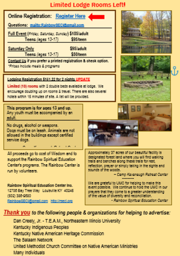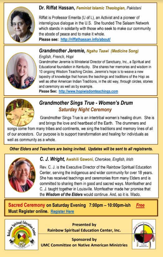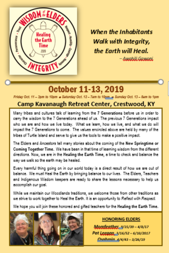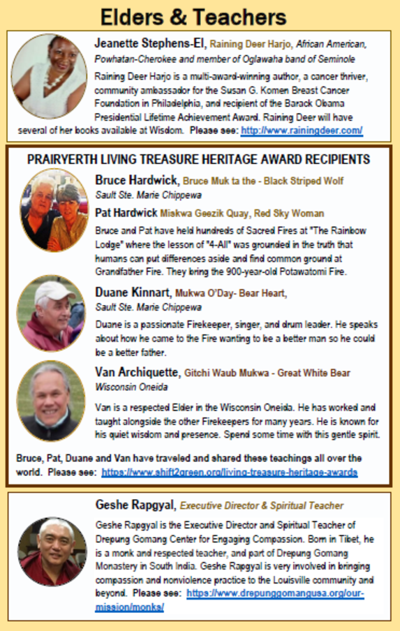 Wisdom of the Elders has a long history of being held in the Chicago area by T.E.A.M. at Northeastern Illinois University and then in Indiana one year and finally for several years in Kentucky, held by Mantle Rock for many years. This is the second time the Rainbow Spiritual Education Center has held the event.